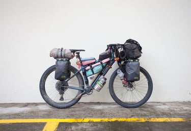 The bike is designed to have a rather flexible carrying capacity. Because depending on the weather, the clothes change. And depending on the degree of wilderness, you end up taking more water and food. Anyway, it has to be able to compress to a minimum if I don't need it, but have something to carry more if necessary.